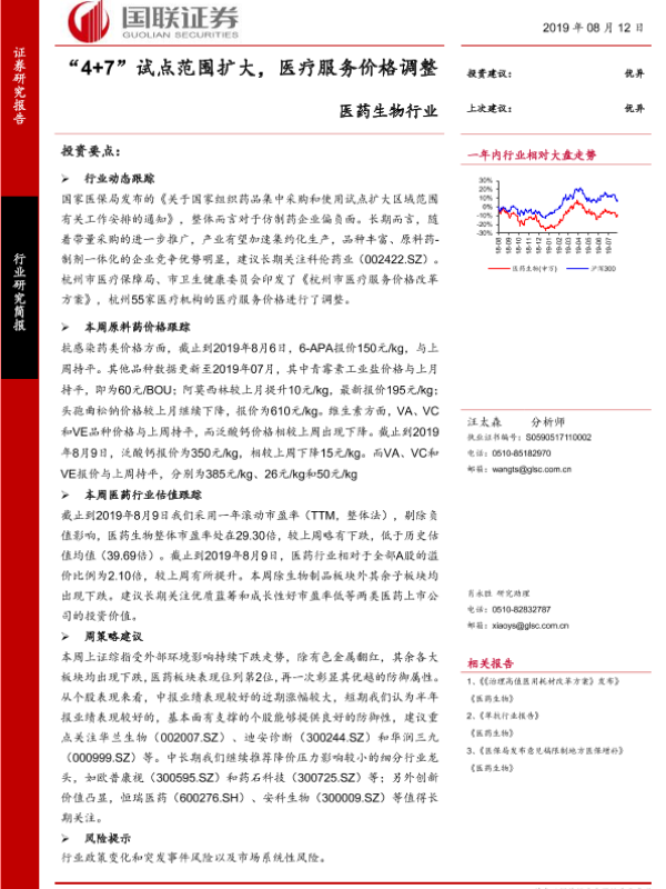 4+7试点 医疗服务价格 医药生物 原料药价格 行业估值