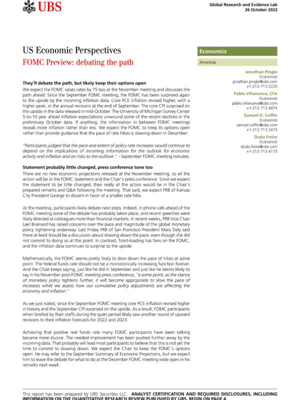 【UBS Securities LLC】【20221026】US Economic Perspectives FOMC Preview debating the path-7页