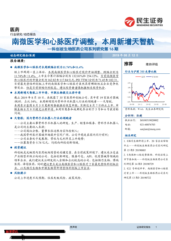 【民生证券】【20190812】南微医学和心脉医疗调整,本周新增天智航-12页