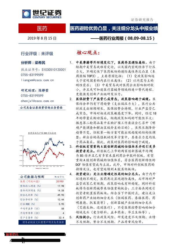 【世纪证券】【20190815】医药行业周报:医药避险优势凸显,关注细分龙头中报业绩-7页