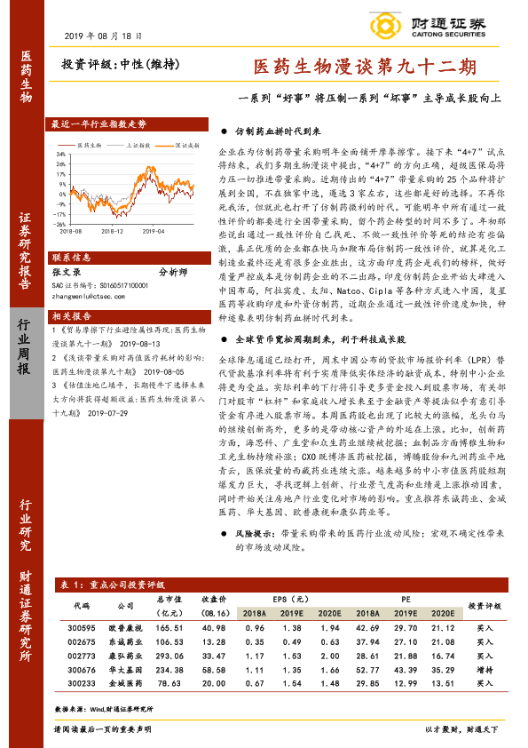 【财通证券】【20190818】医药生物漫谈第九十二期:一系列“好事”将压制一系列“坏事”主导成长股向上-10页