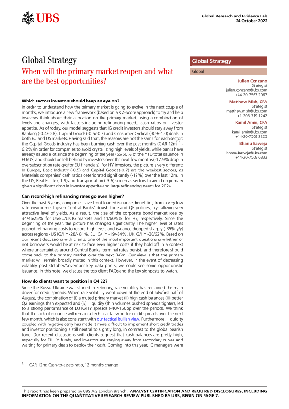 【UBS AG London Branch】【20221024】全球策略:初级市场何时重新开放及最佳机遇是什么-10页