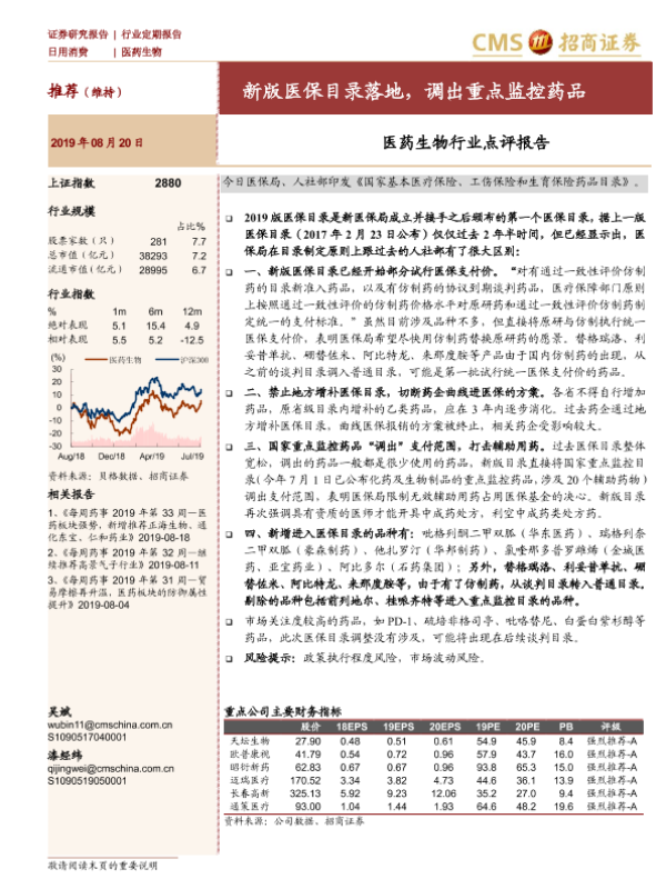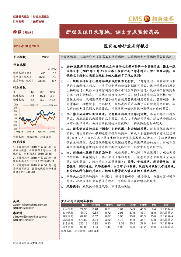 【海通证券】【20190820】医药生物行业点评报告:新版医保目录落地,调出重点监控药品-3页