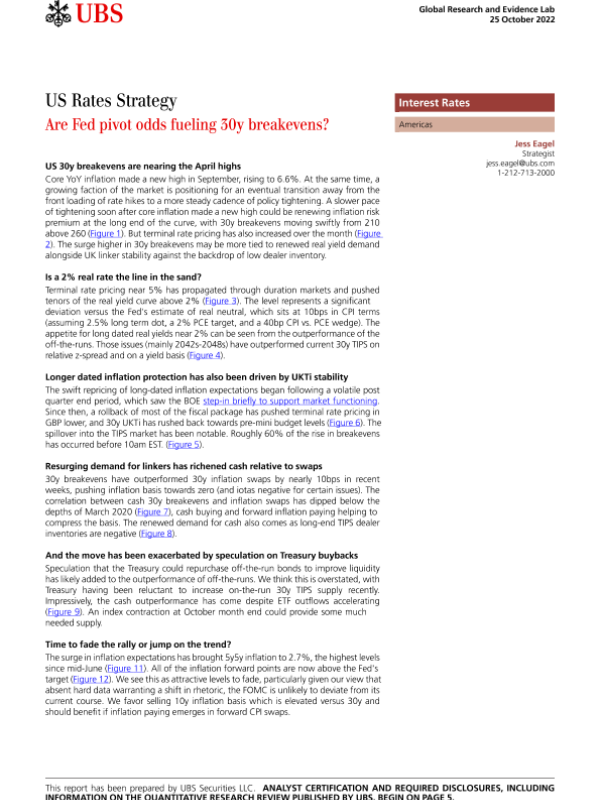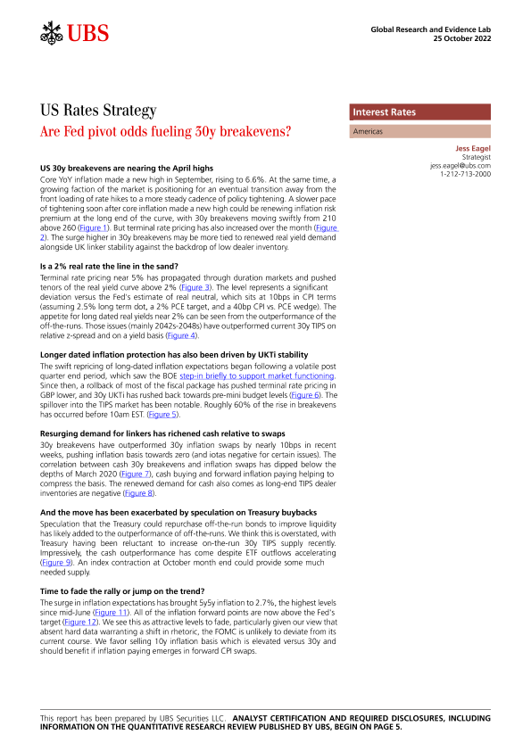 【UBS Securities LLC】【20221025】US Rates Strategy _Are Fed pivot odds fueling 30y breakevens?-8页