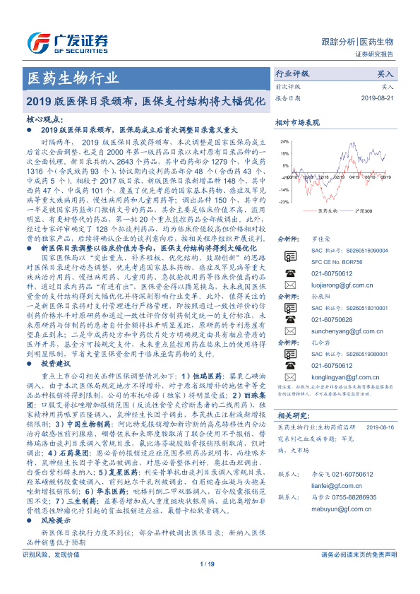 【广发证券】【20190821】2019版医保目录颁布,医保支付结构将大幅优化-19页