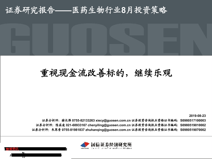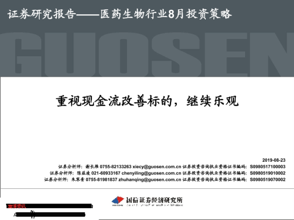 【国信证券】【20190823】医药生物行业8月投资策略:重视现金流改善标的,继续乐观-37页