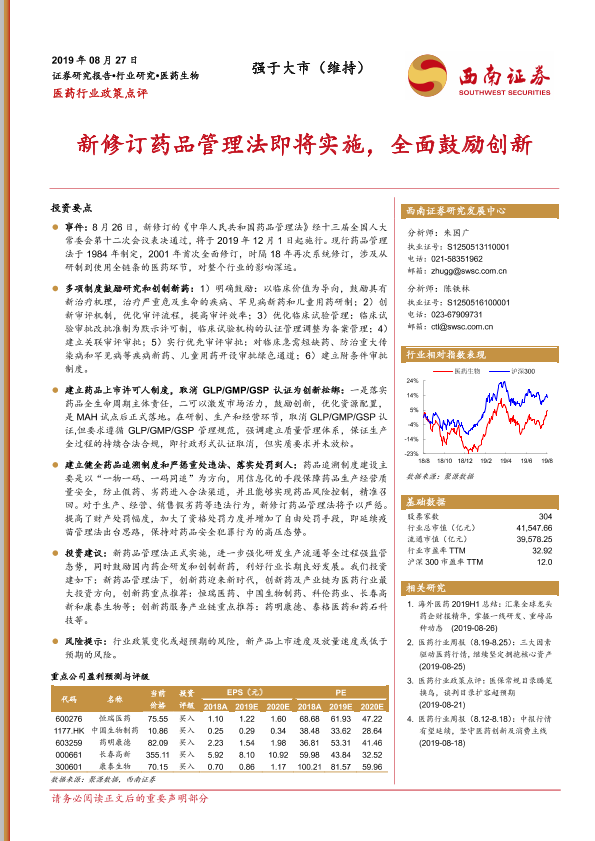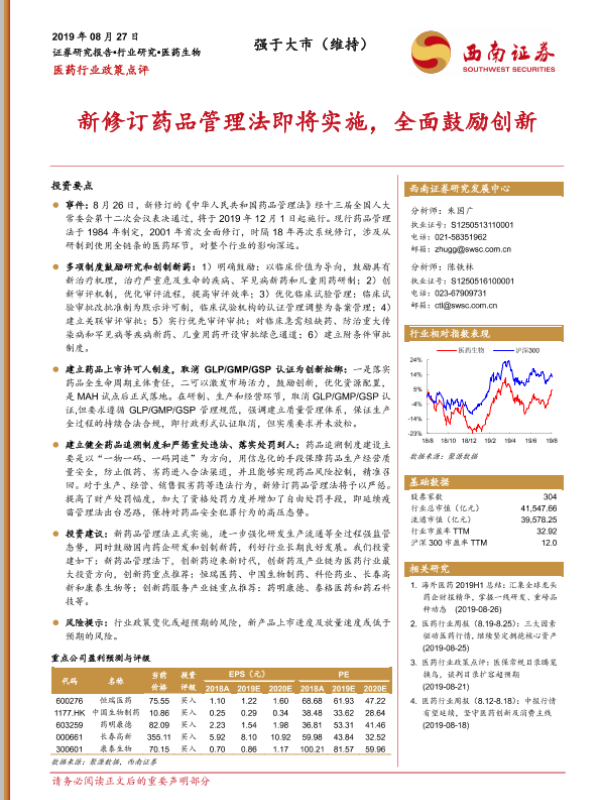 【西南证券】【20190827】医药行业政策点评:新修订药品管理法即将实施,全面鼓励创新-3页