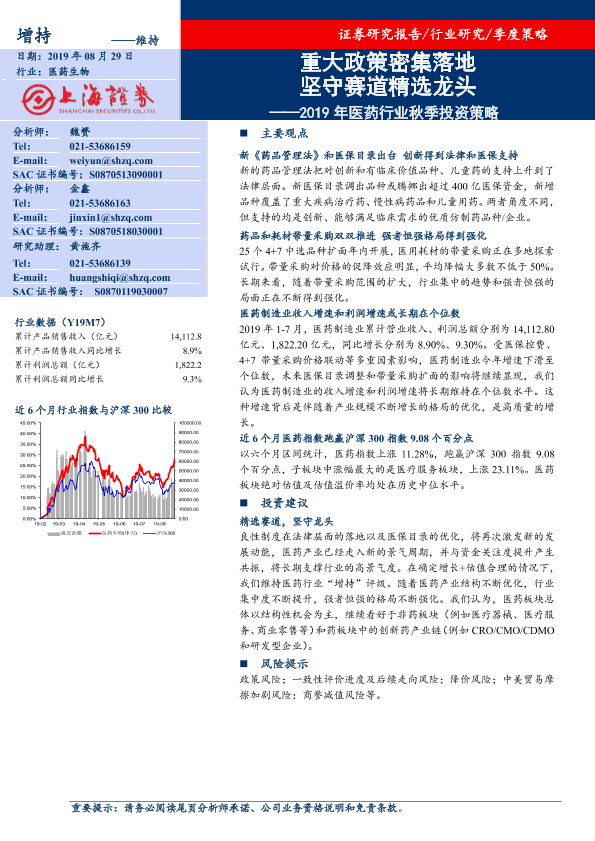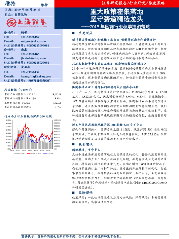【上海证券】【20190829】2019年医药行业秋季投资策略:重大政策密集落地 坚守赛道精选龙头-35页