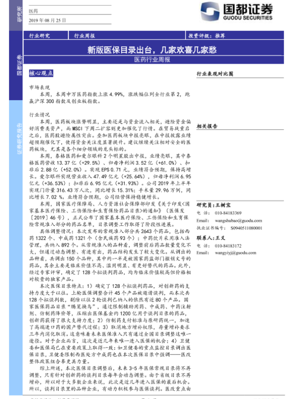 【国都证券】【20190825】医药行业周报:新版医保目录出台,几家欢喜几家愁-3页