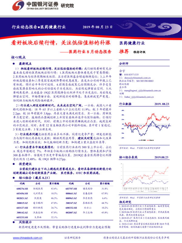【银河证券】【20190823】医药行业8月动态报告:看好板块后续行情,关注低估值标的补涨-63页