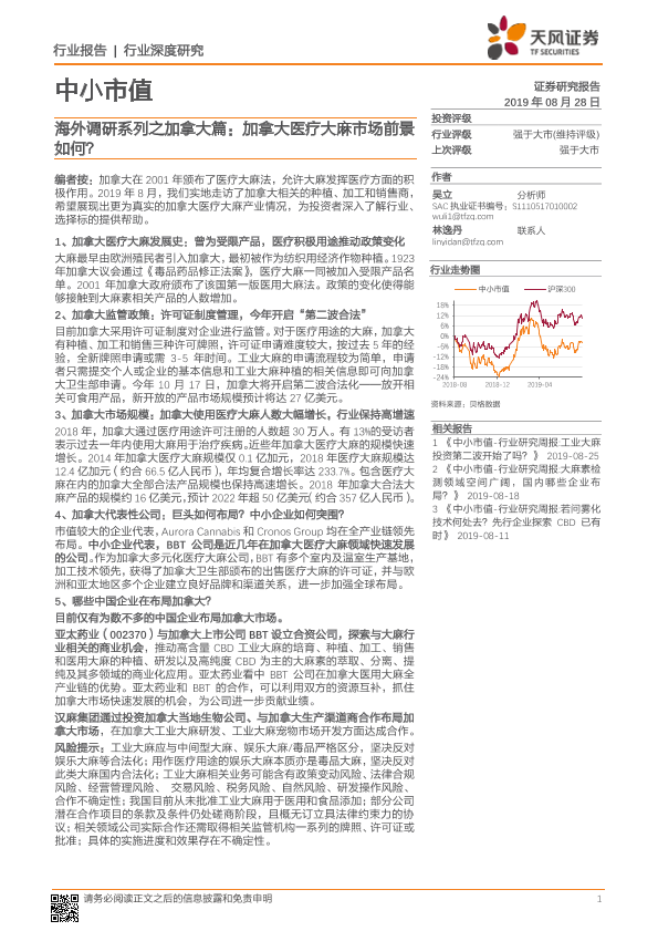 【天风证券】【20190828】海外调研系列之加拿大篇:加拿大医疗大麻市场前景如何?-25页