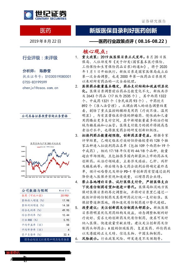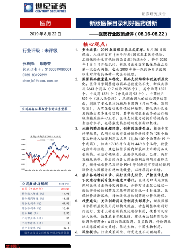 【世纪证券】【20190822】医药行业政策点评:新版医保目录利好医药创新-8页