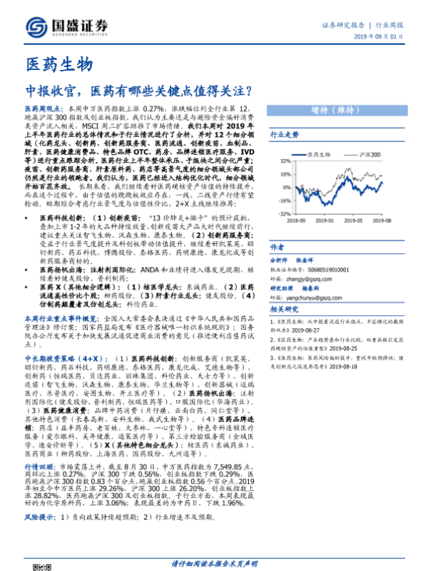 【国盛证券】【20190901】医药生物行业周报:中报收官,医药有哪些关键点值得关注-20页