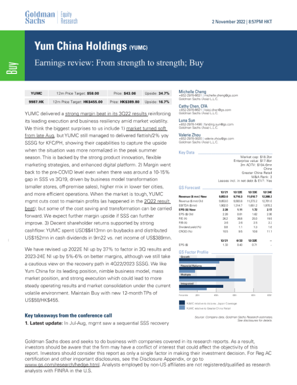 【Goldman Sachs】【20221102】um China Holdings (YUMC)_ Earnings review_ From strength to strength; Buy-10页