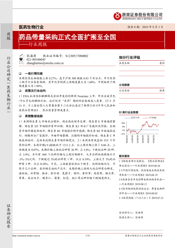 【浙商证券】【20190901】医药生物行业周报:药品带量采购正式全面扩围至全国-34页