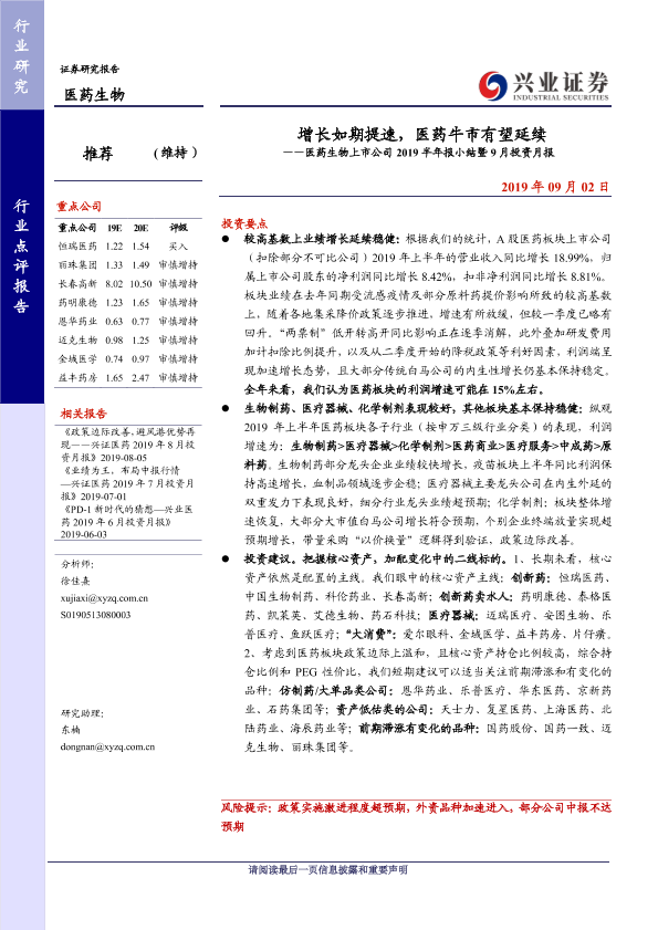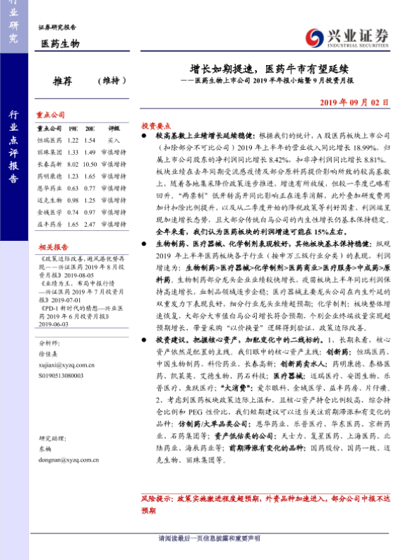 【兴业证券】【20190902】增长如期提速,医药牛市有望延续-19页