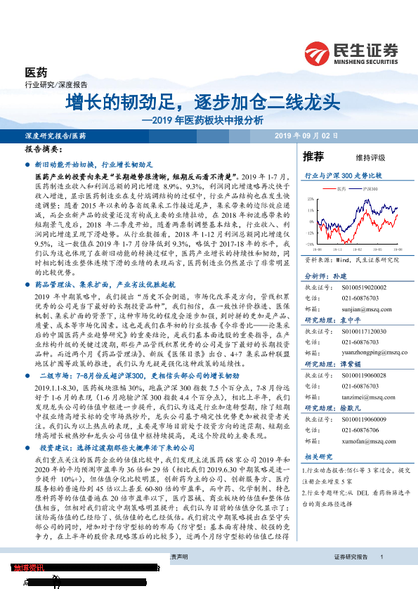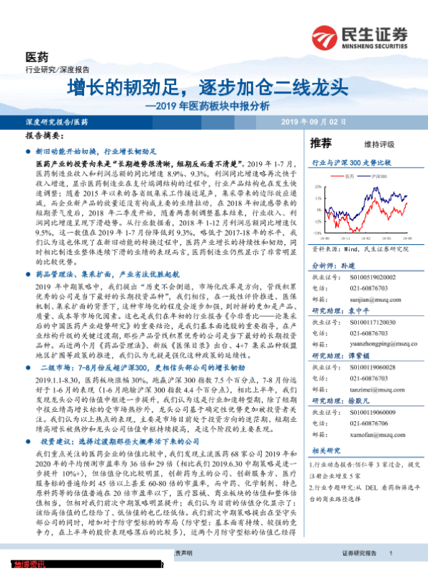 【民生证券】【20190902】2019年医药板块中报分析:增长的韧劲足,逐步加仓二线龙头-23页