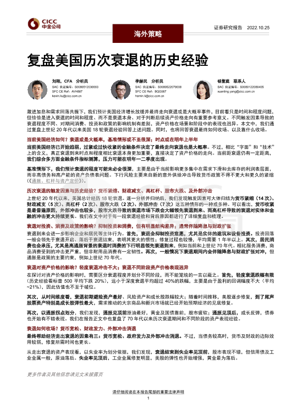 【中金公司】【20221025】海外策略:复盘美国历次衰退的历史经验-55页