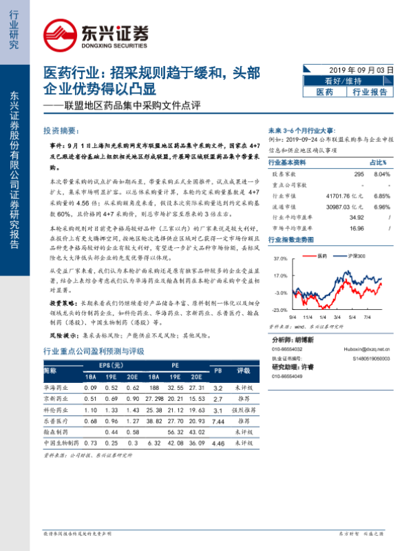 【东兴证券】【20190903】联盟地区药品集中采购文件点评:招采规则趋于缓和,头部企业优势得以凸显-7页