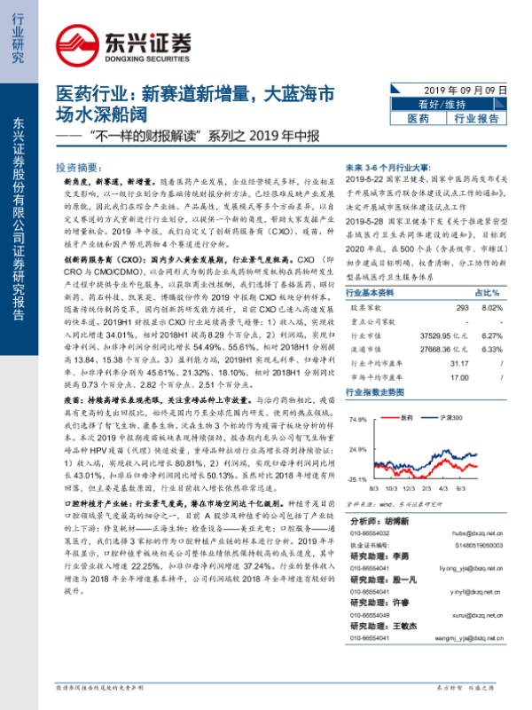 【东兴证券】【20190909】医药行业:“不一样的财报解读”系列之2019年中报-新赛道新增量,大蓝海市场水深船阔-22页