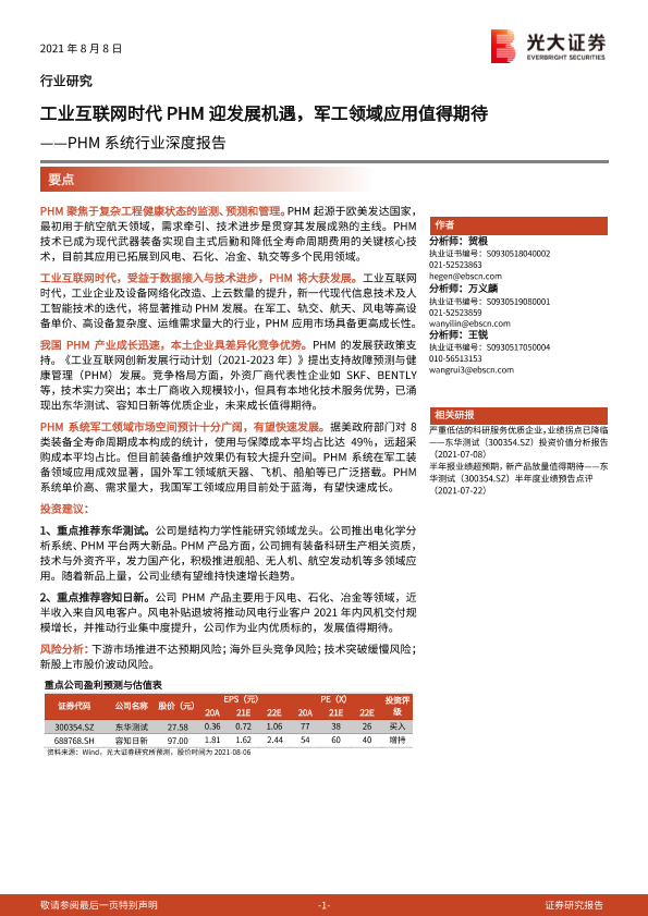 【光大证券】【20210808】PHM系统行业深度报告:工业互联网时代PHM迎发展机遇,军工领域应用值得期待-24页