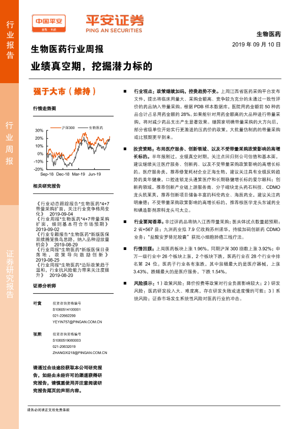 【平安证券】【20190910】生物医药行业周报:业绩真空期,挖掘潜力标的-5页