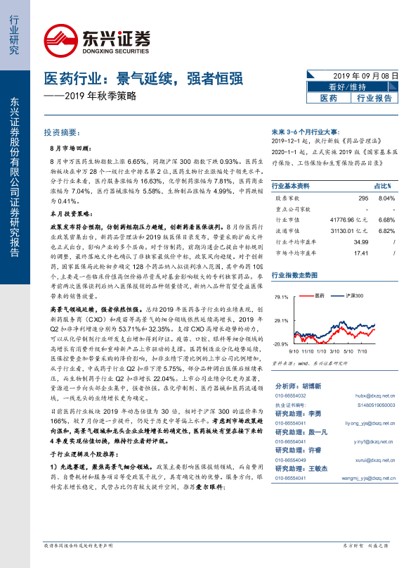 【东兴证券】【20190908】医药2019年秋季策略:景气延续,强者恒强-63页