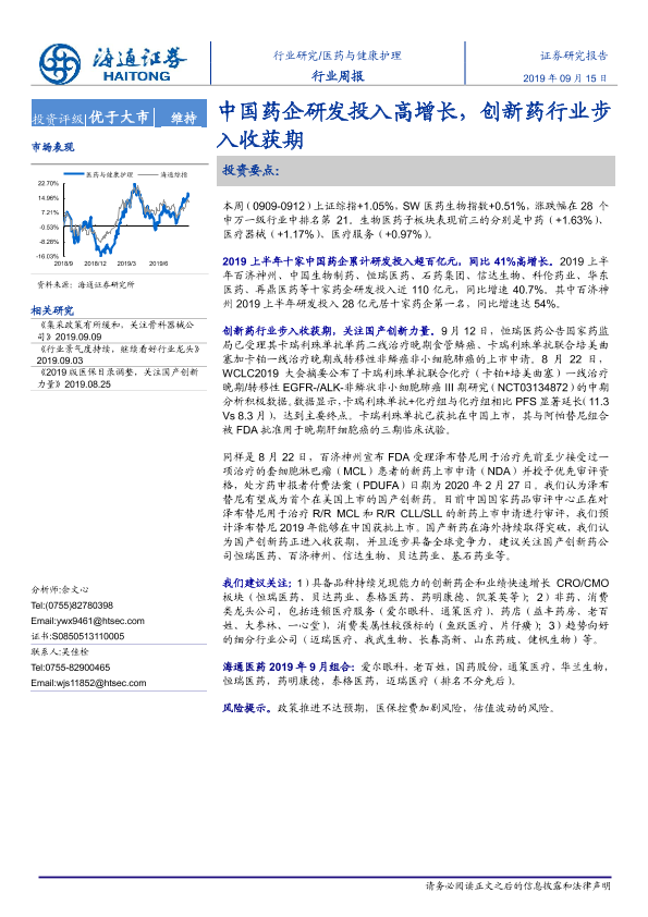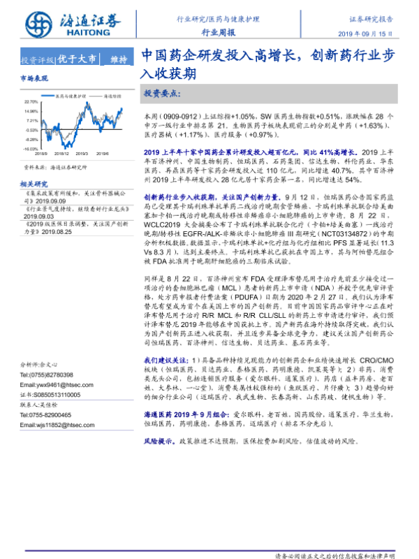 【海通证券】【20190915】中国药企研发投入高增长,创新药行业步入收获期-10页