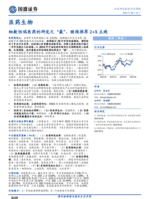 【国盛证券】【20190914】医药生物行业周报:细数恒瑞医药的研发之“最”,继续推荐2+X主线-21页