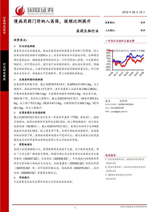 【国联证券】【20190916】医药生物行业:慢病用药门诊纳入医保,报销比例提升-19页