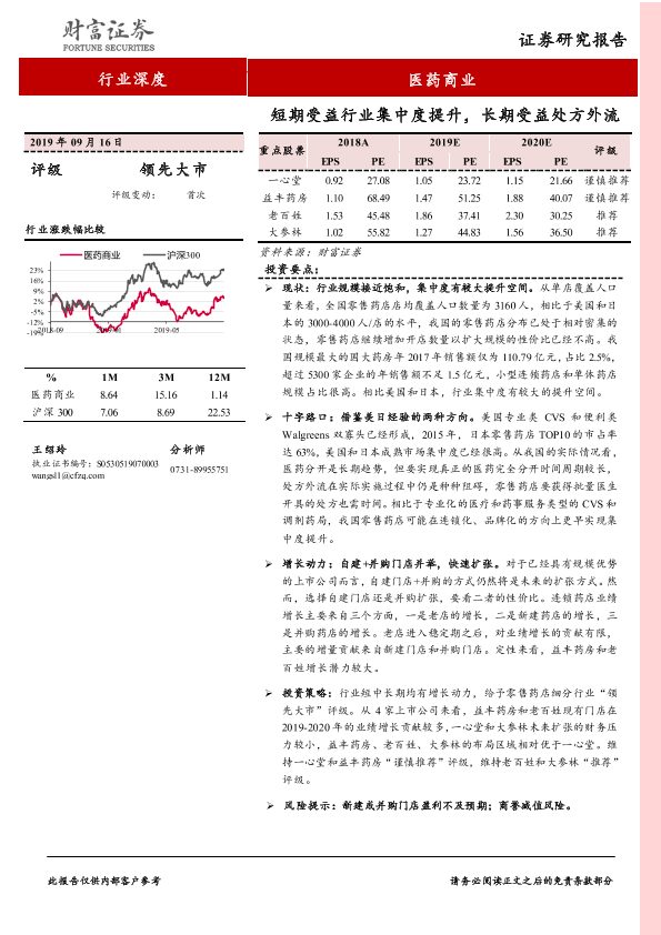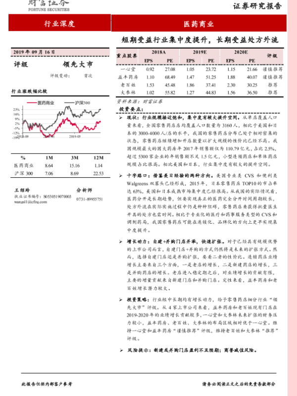 【财信证券】【20190916】医药商业行业深度:短期受益行业集中度提升,长期受益处方外流-23页