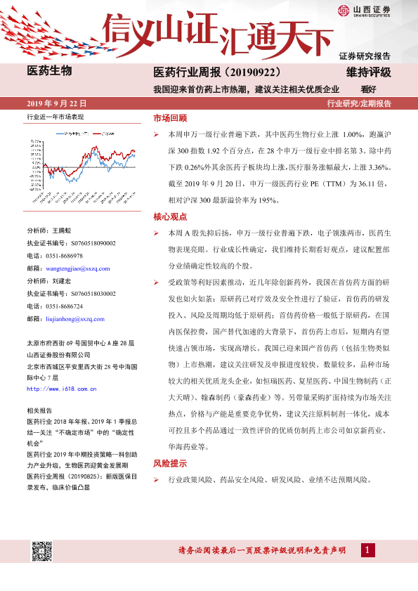 【山西证券】【20190922】我国迎来首仿药上市热潮,建议关注相关优质企业-8页