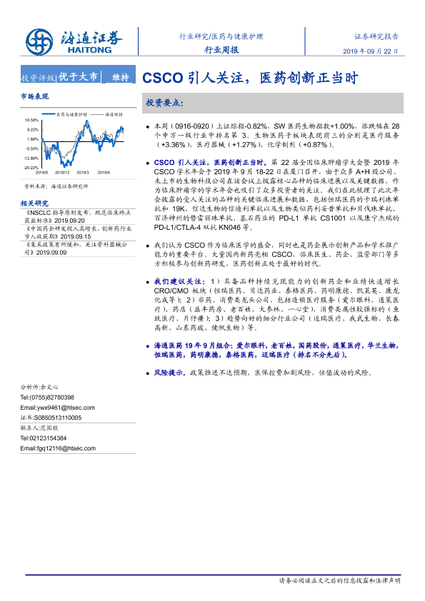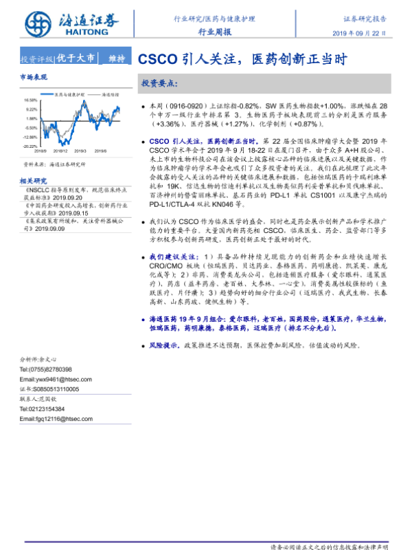 【海通证券】【20190922】医药与健康护理行业周报:CSCO引人关注,医药创新正当时-10页
