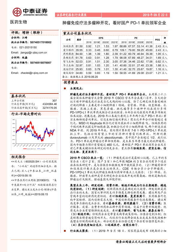【中泰证券】【20190922】医药生物行业周报:肿瘤免疫疗法多瘤种开花,看好国产PD-1单抗领军企业-8页
