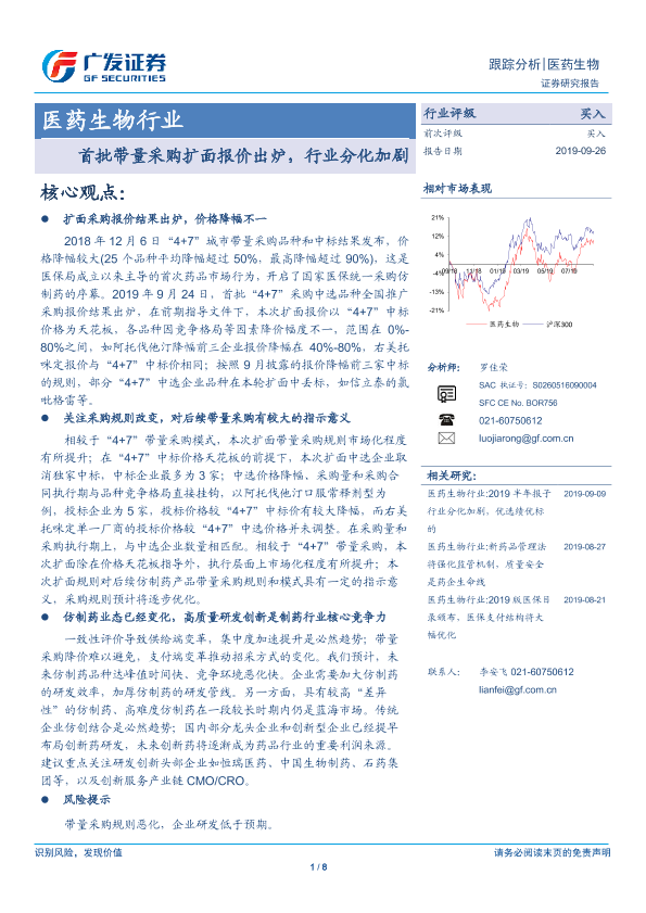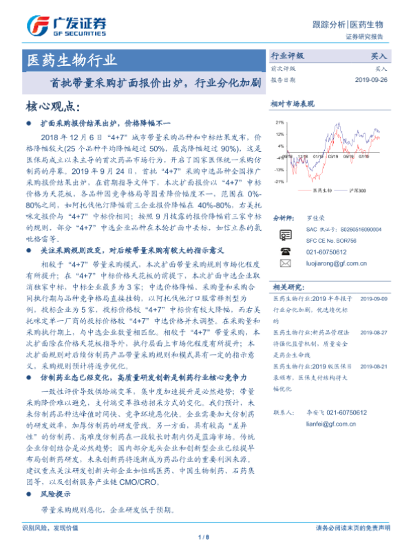 【广发证券】【20190926】首批带量采购扩面报价出炉,行业分化加剧-8页