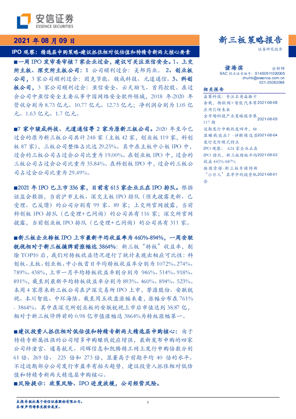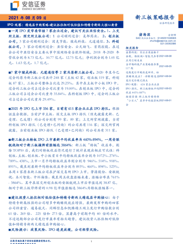 【安信证券】【20210809】IPO观察:精选层申购策略,建议抓住相对低估值和特精专新两大核心要素-17页