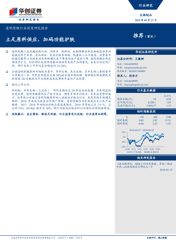 【华创证券】【20190927】透明质酸行业深度研究报告:立足原料供应,加码功能护肤-30页