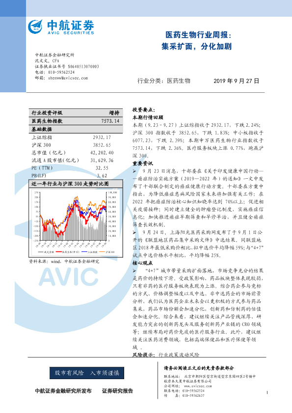 【中航证券】【20190927】医药生物行业周报:集采扩面,分化加剧-6页