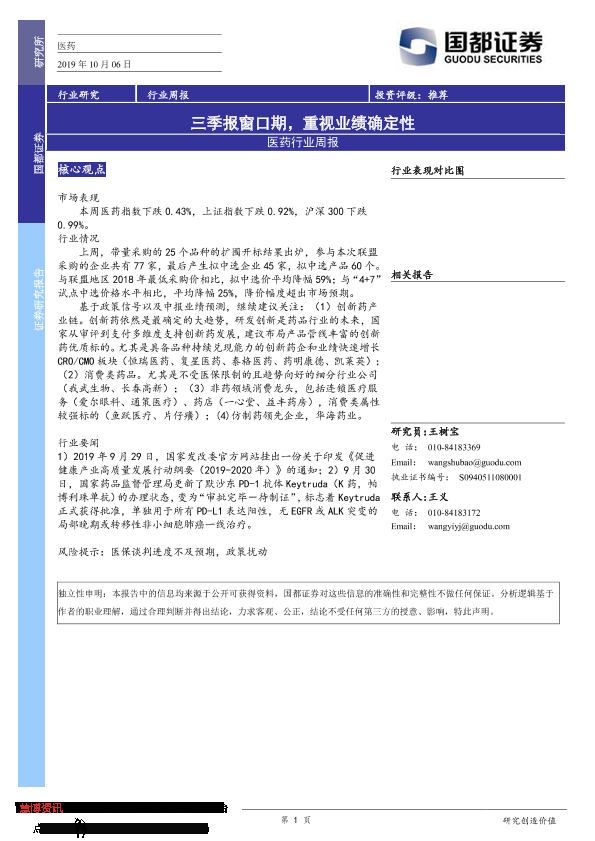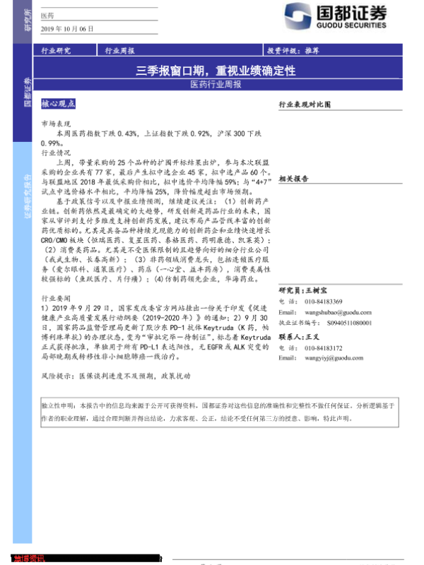 【国都证券】【20191006】医药行业周报:三季报窗口期,重视业绩确定性-2页