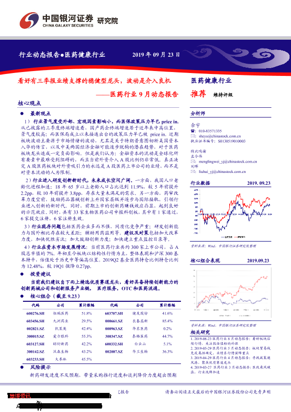 【银河证券】【20190923】医药行业9月动态报告:看好有三季报业绩支撑的稳健型龙头,波动是介入良机-59页