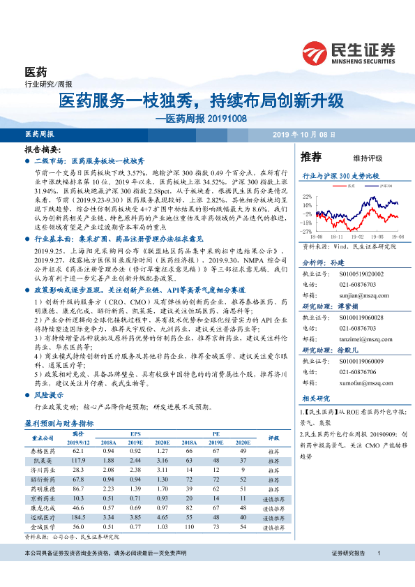 【民生证券】【20191008】医药服务一枝独秀,持续布局创新升级-14页