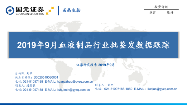 【国元证券】【20191009】2019年9月血液制品行业批签发数据跟踪-8页