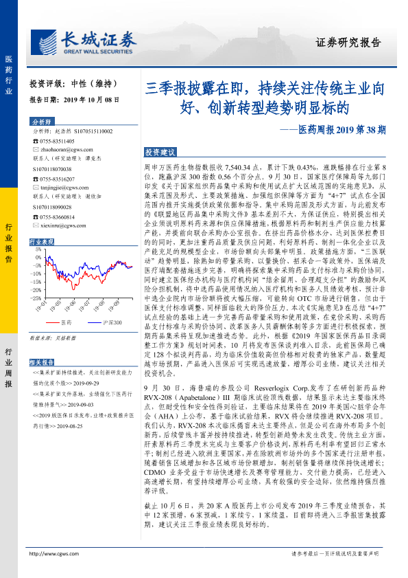【长城证券】【20191008】三季报披露在即,持续关注传统主业向好、创新转型趋势明显标的-15页
