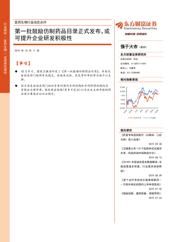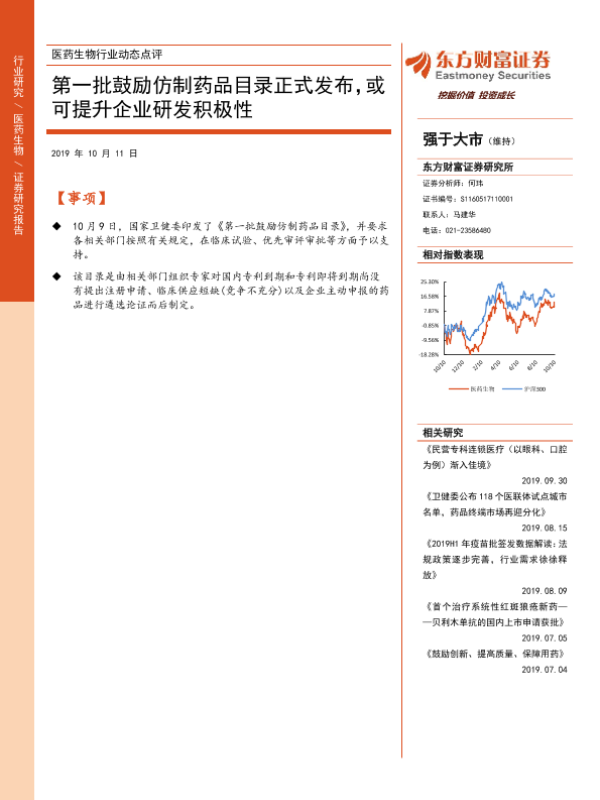 【东方财富证券】【20191011】医药生物行业动态点评:第一批鼓励仿制药品目录正式发布-5页