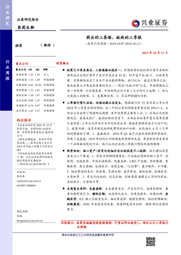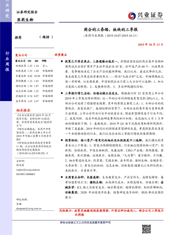 【兴业证券】【20191013】药企的三条路,板块的三季报-12页