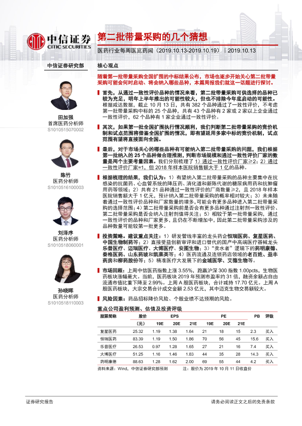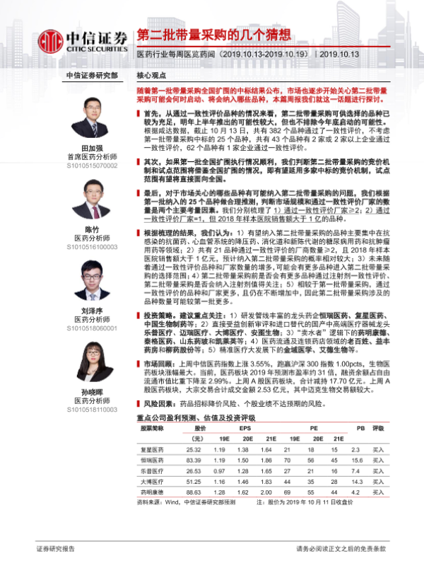 【中信证券】【20191013】第二批带量采购的几个猜想-18页