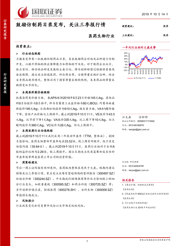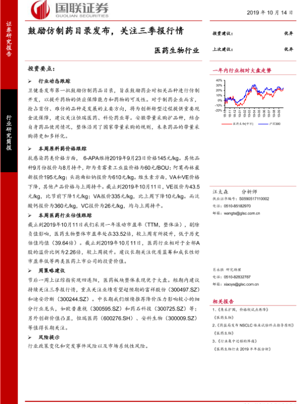 【国联证券】【20191014】鼓励仿制药目录发布,关注三季报行情-21页