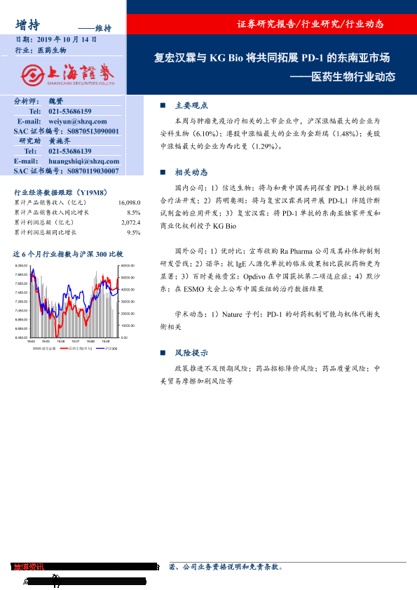 【上海证券】【20191014】复宏汉霖与KGBio将共同拓展PD-1的东南亚市场-10页