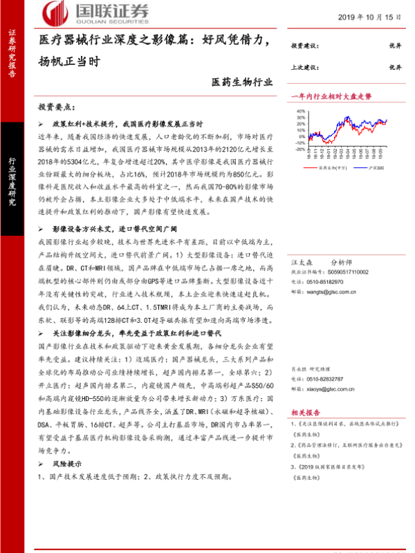 【国联证券】【20191015】医疗器械行业深度之影像篇:好风凭借力,扬帆正当时-24页