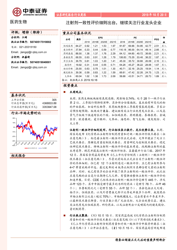 【中泰证券】【20191020】医药生物行业周报:注射剂一致性评价细则出台,继续关注行业龙头企业-8页